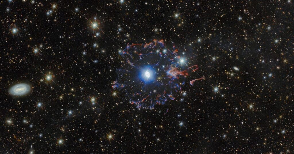 Por su parte, Hubble, referente en la astronomía óptica desde 1990, capturó imágenes detalladas del núcleo brillante y de las estructuras internas con una resolución que supera los límites anteriores de la observación espacial. El resultado de esta estrategia conjunta es una composición visual que resalta tanto la delicadeza de las capas internas como el contraste con el fondo de galaxias distantes.